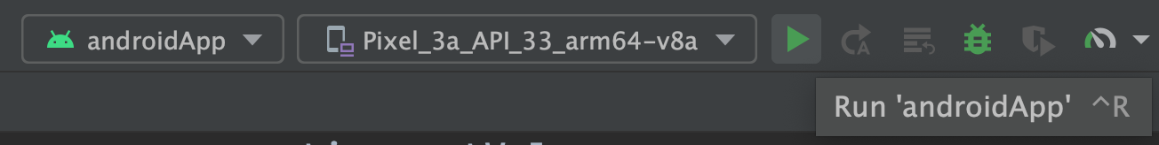 • Select the androidApp run configuration.